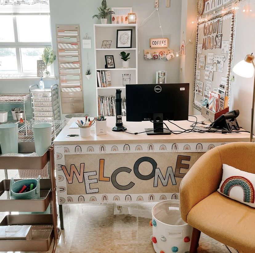 Make a great first impression with a desk featuring a welcome sign or design. This idea enhances the entry area of your classroom while setting a friendly, inviting tone.