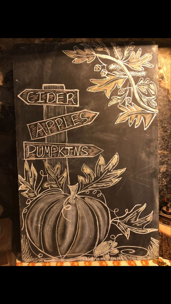The trio of cider, apples, and pumpkins symbolizes the essence of fall. These items can be creatively incorporated into a Thanksgiving chalkboard design for a cozy, rustic feel. Draw steaming cups of cider, colorful apples, and bright pumpkins to enhance the seasonal theme. This chalkboard not only acts as decor but also serves as a visual reminder of the tastes and traditions that make fall special. It’s the perfect way to infuse the flavors of the season into your Thanksgiving celebration.