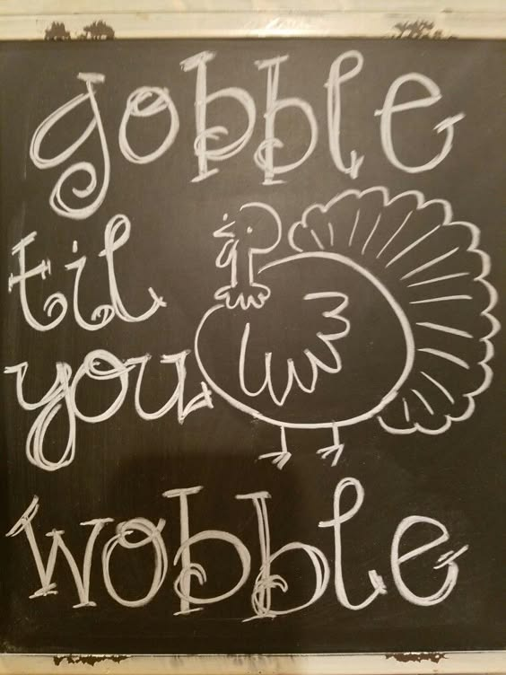 This playful, humorous chalkboard design is sure to bring smiles. “Gobble Till You Wobble” is a lighthearted way to celebrate the indulgent side of Thanksgiving. Adding illustrations of plump turkeys or fun food sketches can make the message even more entertaining. It’s an excellent option for those looking to inject some humor into their holiday decor while keeping the atmosphere festive and inviting.