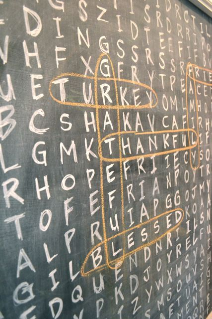 A Thanksgiving-themed word search chalkboard offers a creative twist. This design engages guests by incorporating holiday-related words hidden within the board. Words like “family,” “pumpkin,” and “gratitude” can be circled, making it both decorative and interactive. It’s an ideal option for those looking to combine entertainment with design, providing a fun conversation piece that guests of all ages will enjoy.