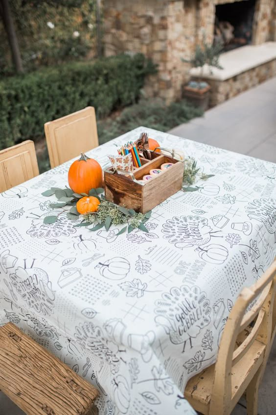 A beautifully designed table cover can serve as the foundation of your Thanksgiving kids’ table. Opt for covers with autumn-themed prints or soft pastel tones to create a warm, inviting atmosphere. Not only does it protect the table from spills, but it also ties the whole look together. This simple addition will elevate your setup, making it feel both festive and kid-friendly with minimal effort.