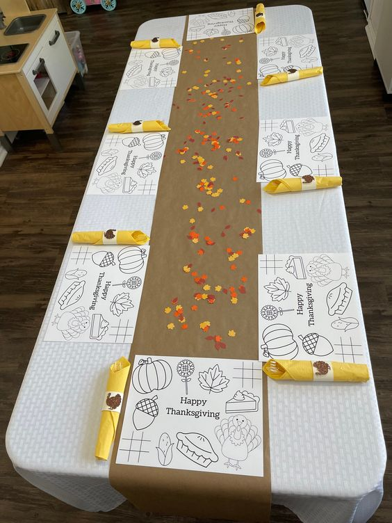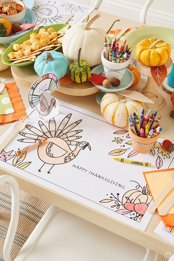 Printable activities are a great way to add both decoration and fun. Look for Thanksgiving-themed printouts like coloring pages, placemats, or word searches that double as table décor and entertainment. Parents will appreciate the effort, and kids will stay entertained with engaging activities while they wait for the meal. What’s great about printables is how easy they are to prepare, making this an efficient and delightful way to enhance your Thanksgiving setup.