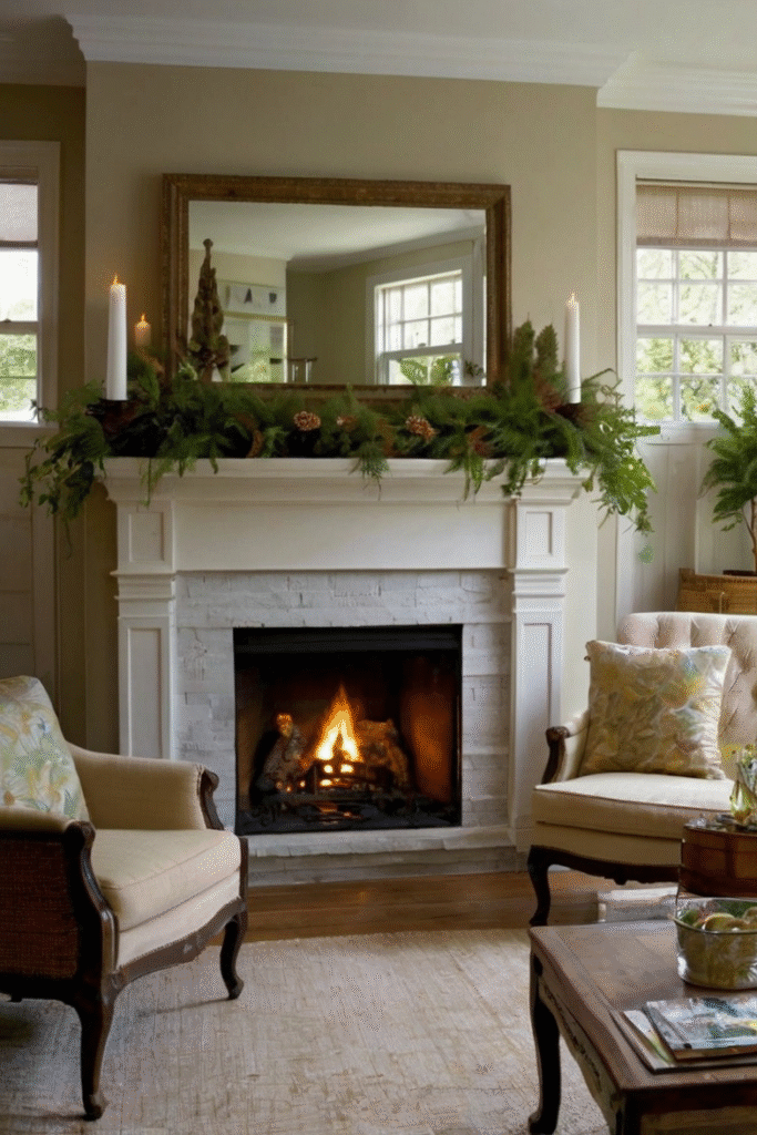 A fireplace naturally becomes the heart of a traditional living room. Adding a classic mantel and artwork or a mirror above it creates an inviting focal point. Even if the fireplace isn’t functional, a decorative surround adds architectural interest. You can style the mantel with candles, greenery, or seasonal décor to keep the area warm and welcoming year-round.