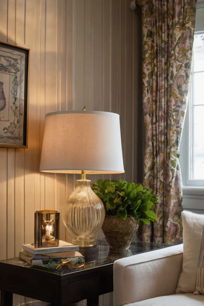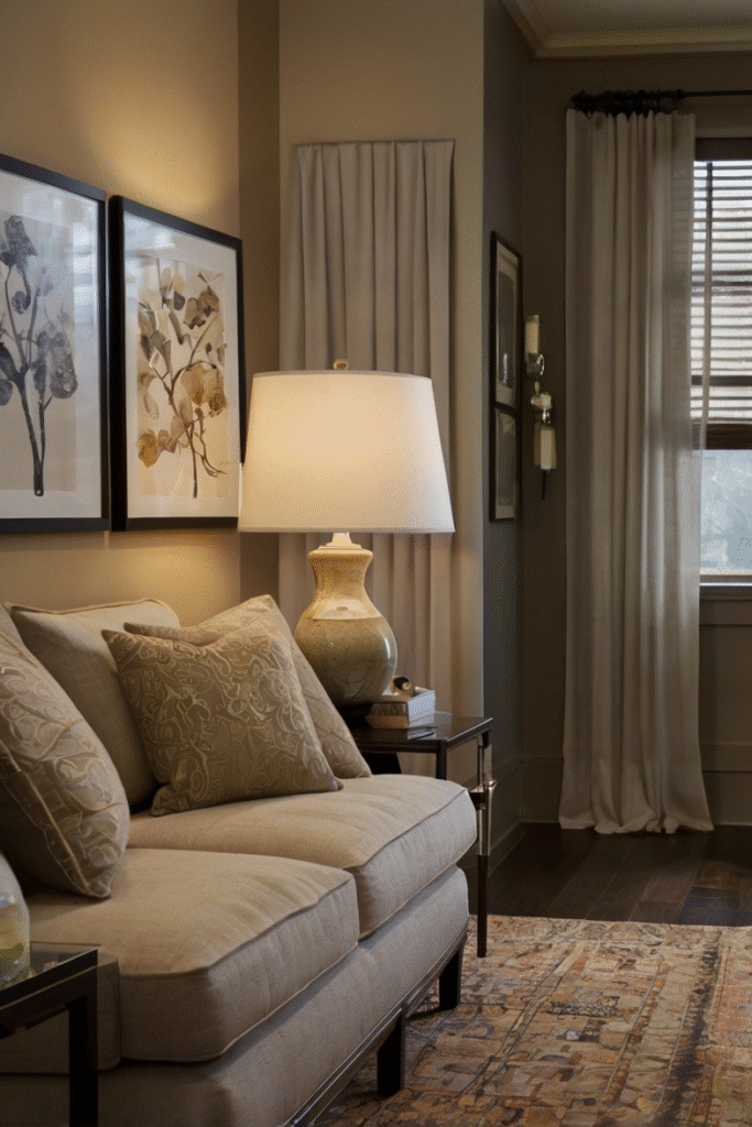 Lighting layered throughout the room creates a warm, inviting atmosphere. Instead of relying solely on overhead lights, combine table lamps, floor lamps, sconces, and accent lighting. This approach highlights different areas and gives you control over the room’s mood. Well-layered lighting makes the space feel thoughtfully designed and welcoming.
