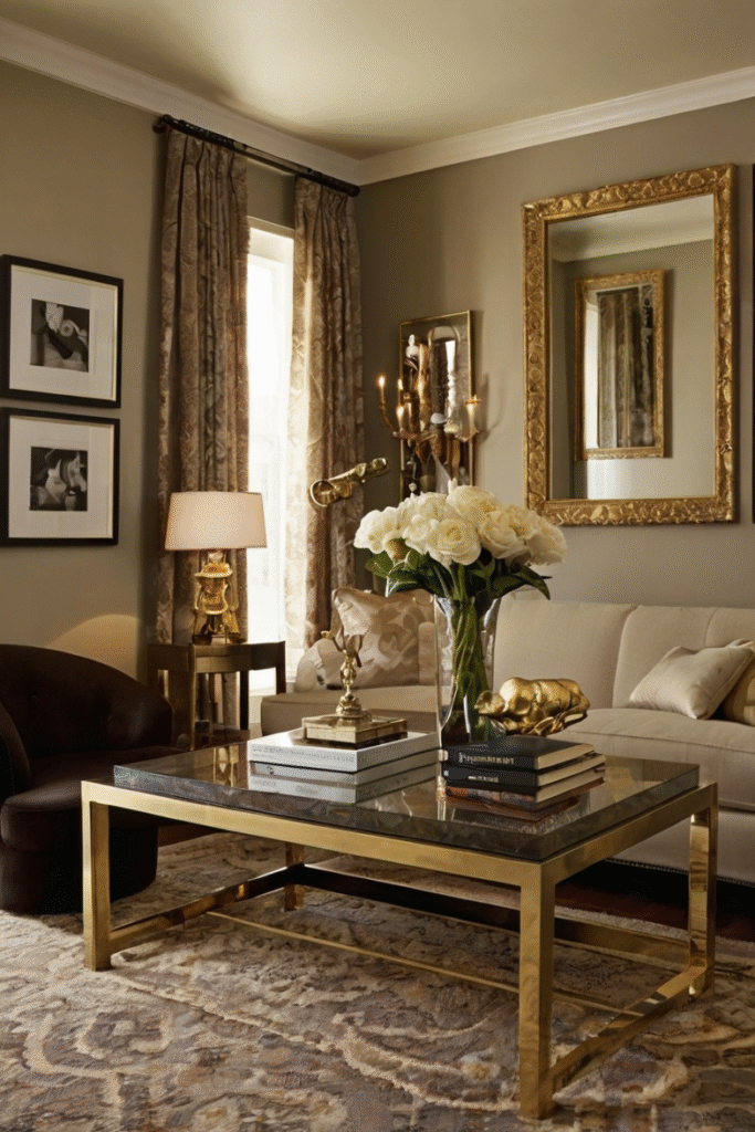 Brass details act like subtle jewelry for your living room. Small touches—like brass hardware, lamps, or frames—add shine and warmth without overpowering the space. Brass works well with traditional color schemes and brings a timeless quality that never feels overly trendy.