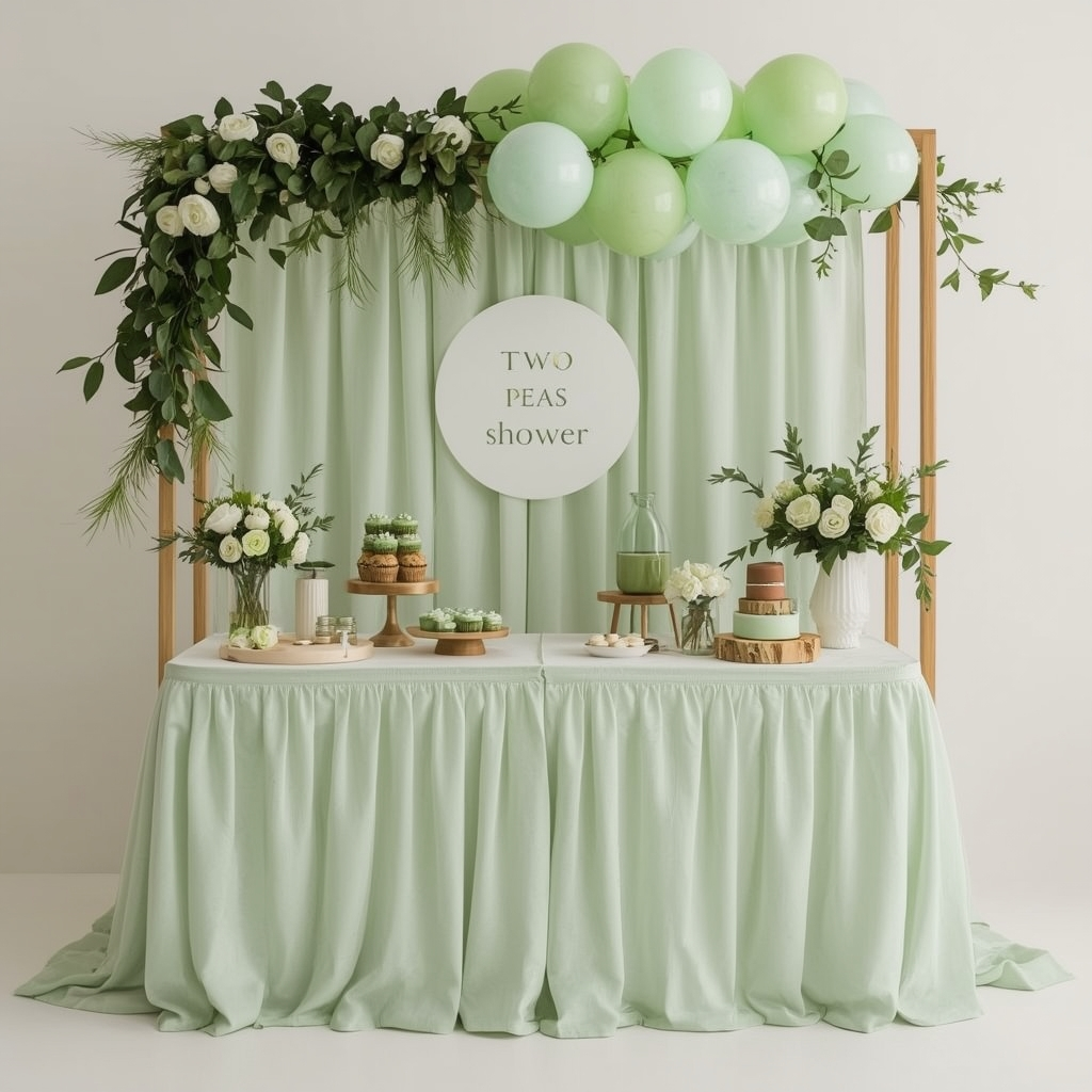 Build your shower around the sweet “two peas in a pod” idea, using gentle greens and soft neutrals to establish a calming backdrop. Pea pod illustrations can be incorporated into signage, cupcake toppers, and welcome boards to subtly reinforce the theme.