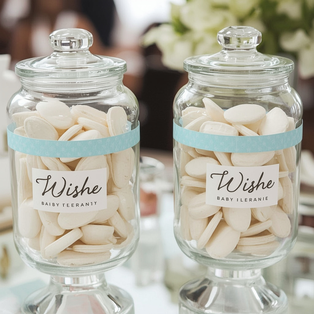 Set up a meaningful wish station where guests write individual notes for each baby. Use two jars, boxes, or envelopes clearly labeled for each twin. Provide small cards and pens at a designated table.