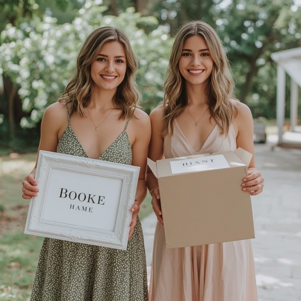 Transform the announcement of the babies’ names into a memorable twin reveal. Use two covered frames, decorative boxes, or balloons that can be opened simultaneously.