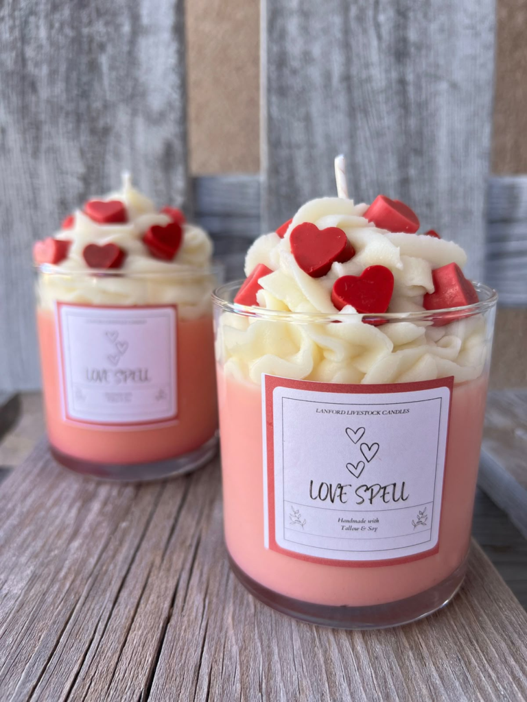 Whipped or textured candles create visual interest through intricate surfaces. Their soft, airy look adds a delicate, artisanal feel to your Valentine’s display. Perfect for tabletops or mantels, they blend beauty and tactile appeal, making them a unique and calming centerpiece.