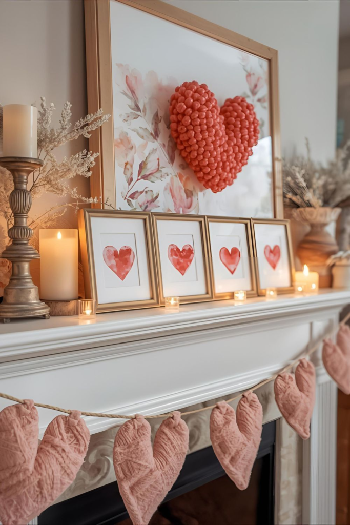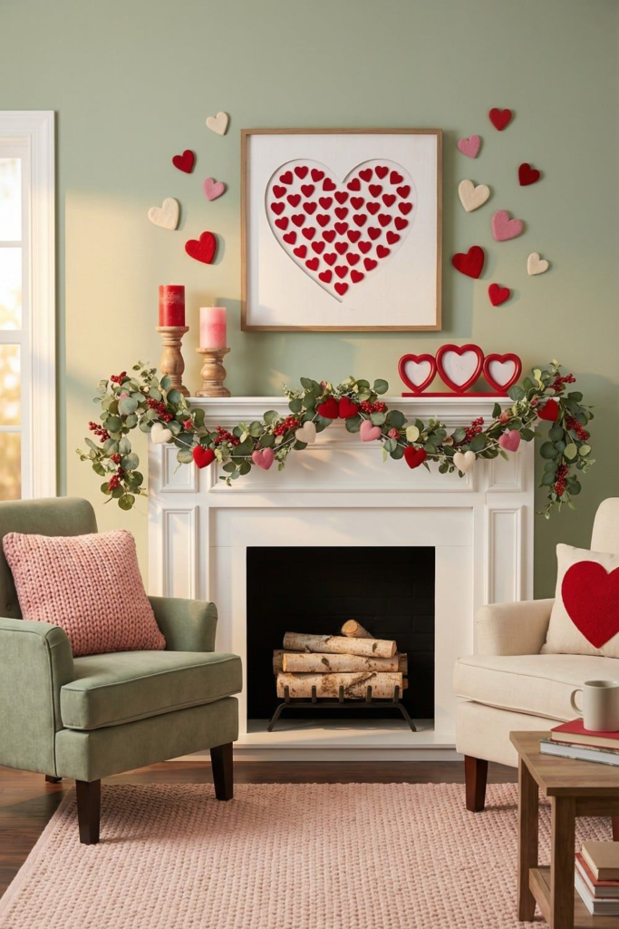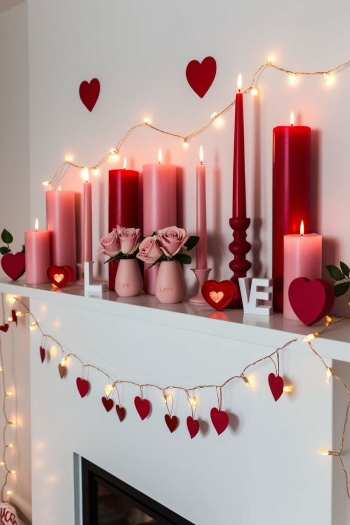 If comfort and warmth are your priorities, a cozy mantle is the way to go. Use candles, plush garlands, or soft fabrics to create a relaxed atmosphere. A cozy setup makes the space inviting while keeping the Valentine’s charm intact.