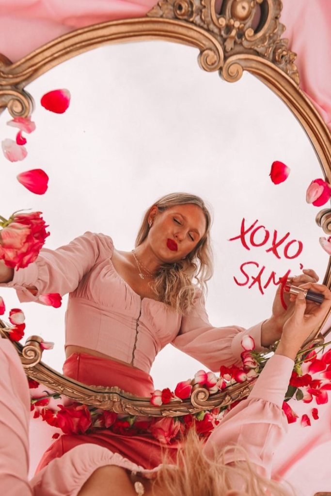A chic Valentine’s photoshoot pose creates an airy, sophisticated look that instantly elevates the scene. Every person brings their own style to the pose, and this individuality makes the photo genuinely captivating. Soft lighting, minimal props, and graceful movements combine to create an effortlessly stylish aesthetic. This approach ensures the final images look polished, elegant, and Instagram-worthy, making it an impressive choice for Valentine’s Day captures.