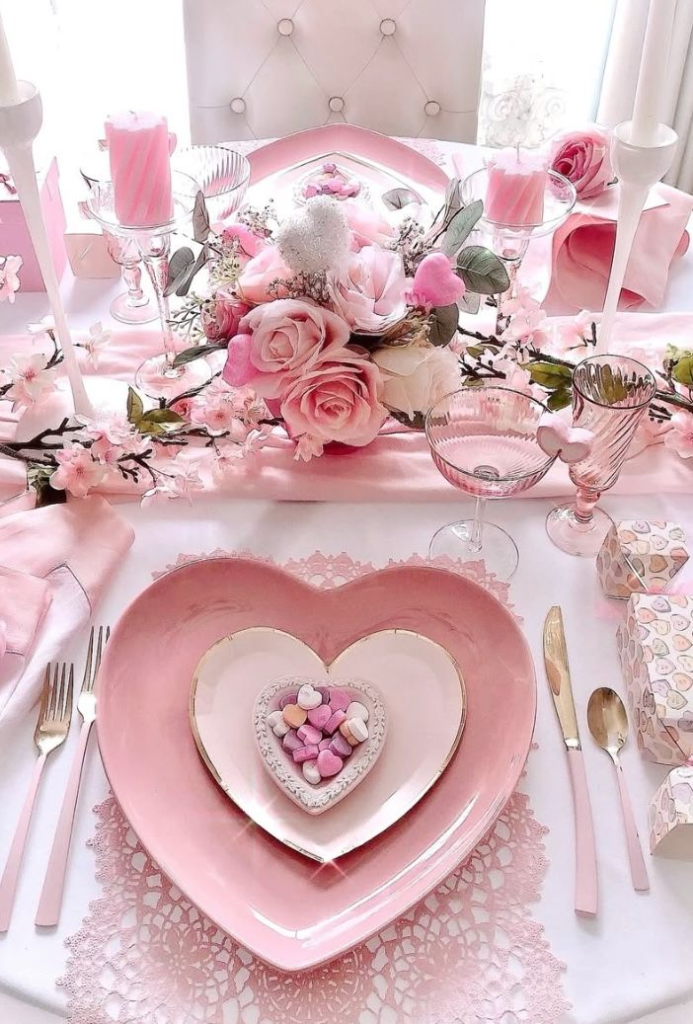 This approach is ideal for those who enjoy traditional aesthetics and want their Valentine’s table to feel elevated and refined without being overly ornate.