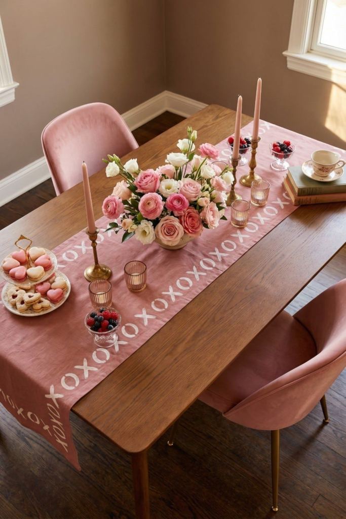 Incorporating a themed table runner is an easy and effective way to introduce Valentine’s flair to your table. A runner featuring playful lettering or romantic motifs adds personality and instantly sets the tone for the celebration.