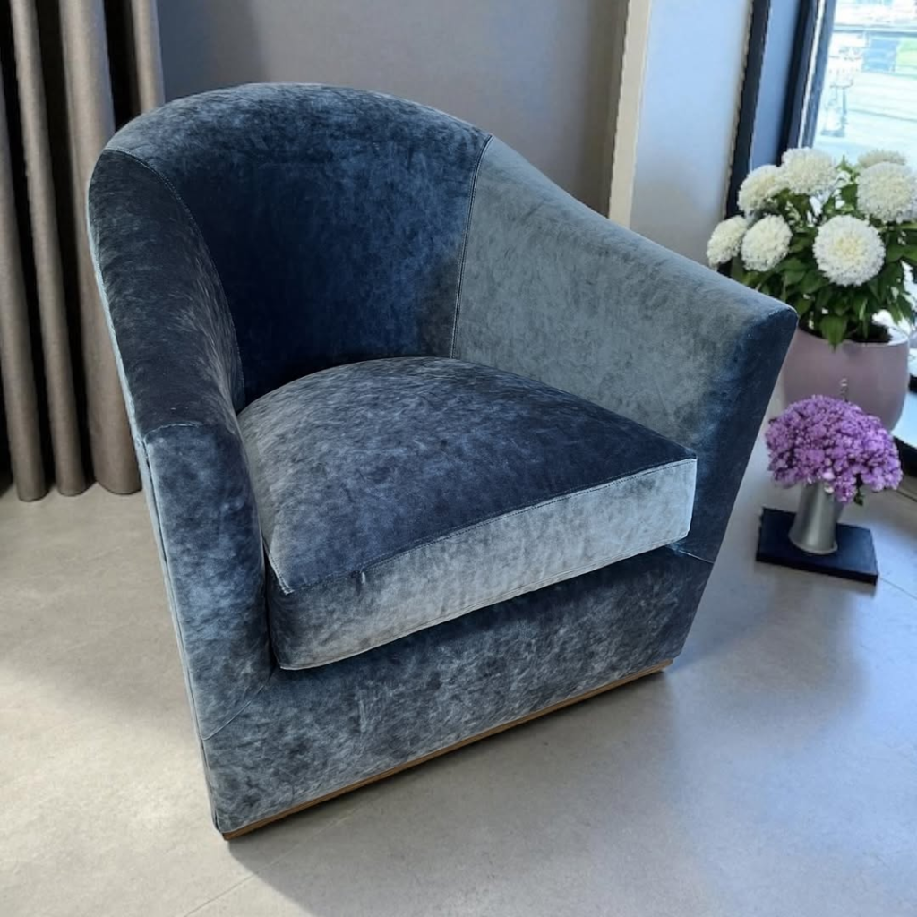 This blue velvet chair introduces a sense of calm sophistication. Its rounded silhouette feels welcoming and soft, while the cool-toned fabric adds depth without dominating the space. The velvet functions almost like a subtle accent rather than a focal point, enhancing the room’s mood through texture and tone. It’s composed, refined, and effortlessly stylish, showing how color and material can elevate a space without overwhelming it.