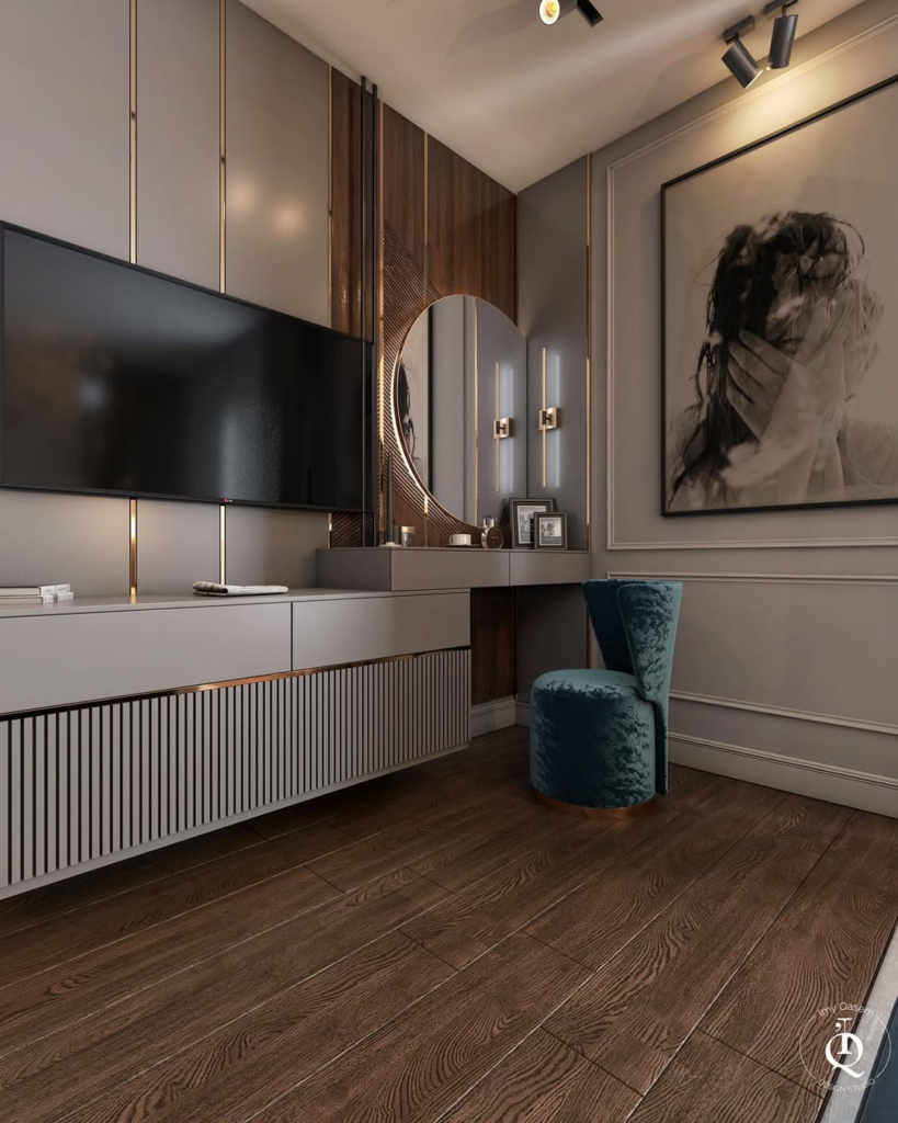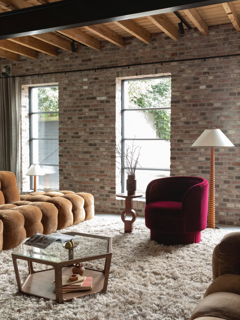Here, velvet meets warmth in a way that feels balanced and approachable. The chair’s earthy tone grounds the space, while the soft fabric introduces comfort and refinement. It feels stylish without being precious, making it suitable for real, everyday living. This design encourages relaxation while still contributing to a polished aesthetic. It’s proof that luxury can feel lived-in and welcoming rather than formal or untouchable.