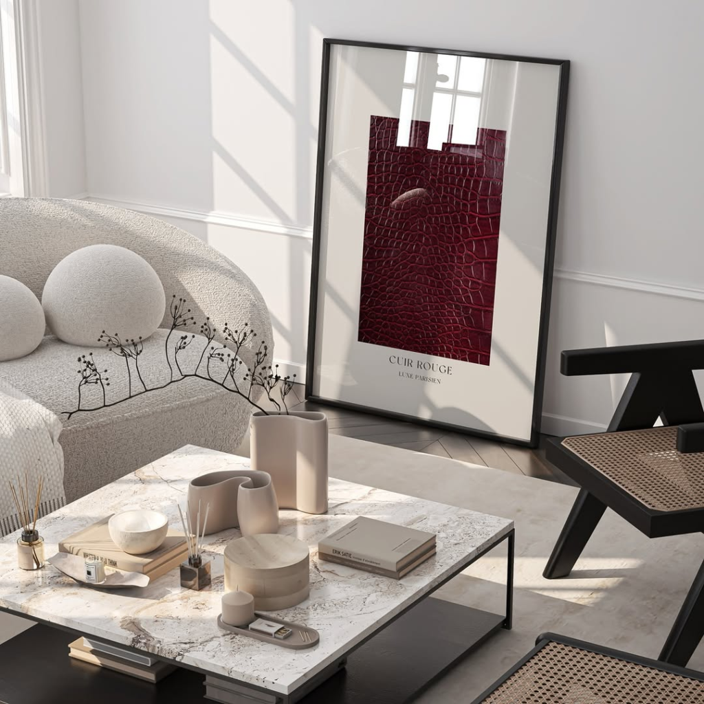 This living room approach proves that subtle design can still feel powerful. The artwork above the sofa blends effortlessly into the space, offering a light, airy presence that doesn’t demand attention but quietly earns it. Soft neutrals create a grounded foundation, helping the room feel timeless rather than tied to a fleeting trend. What stands out most is the restraint—nothing feels excessive or staged. Instead, the wall art supports a slower, more relaxed atmosphere, inviting you to unwind and enjoy the space without distraction. It’s a reminder that calm interiors often have the strongest impact.